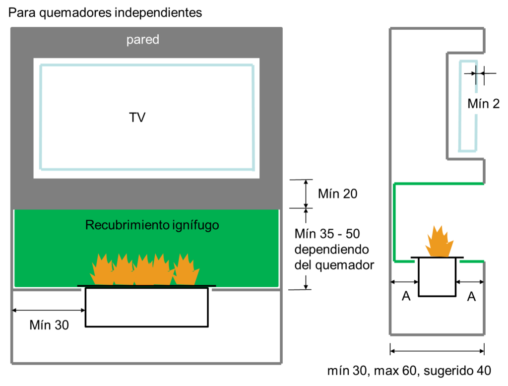 La segunda consideración vale para los quemadores independientes, y es las medidas y recubrimiento del recinto donde irán colocados. También especificados en cada modelo.