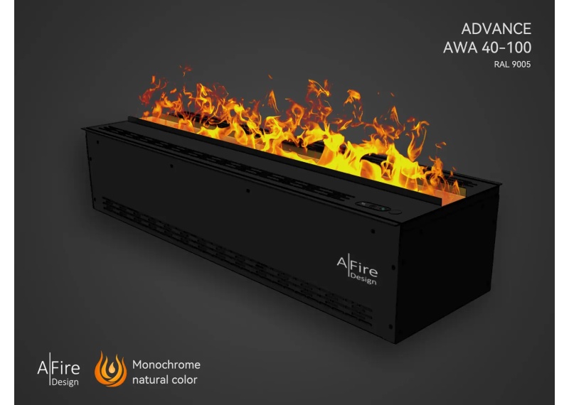 AWA ADVANCE: idem AWL más ajuste brillo de la llama. Botonera de encendido y apagado. Contacto en seco para domótica. Desinfección del agua y aire por UVC. 38 LEDs por metro lineal. 20 horas de autonomía. Posibilidad de combinar unidades en serie.